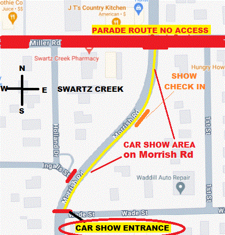 ENTER via Wade Street & S. Morrish Rd. NOTE Miller Rd. will be blocked off for the parade.