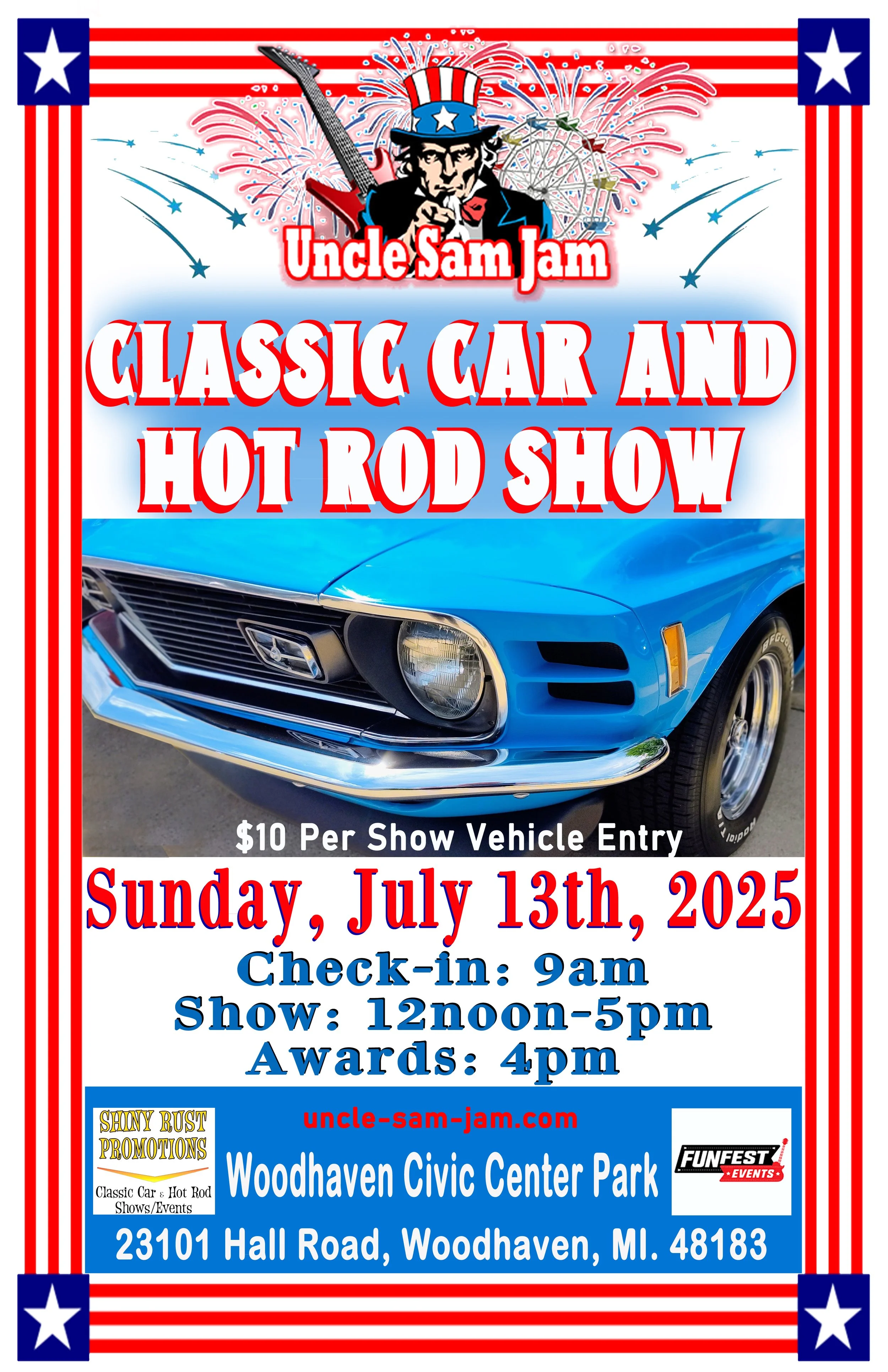UPCOMING EVENTS Wrigley Center Classic Car Show Saturday, May 17 Port Huron, Michigan Show Info Directions Swartz Creek Hometown Days Saturday, May 31 Swartz Creek, Michigan Show Info Directions Uncle Sam Jam Classic Car Show Sunday, July 13 Woodhaven, Michigan Show Info Directions St. Clair County Fair Classic Car Show Saturday, July 19 Goodells, Michigan Show Info Directions Hot Wheels Weekend Car Show Saturday, August 23 Marysville, Michigan Show Info Directions Milford Car Show Sunday, September 21 Milford, Michigan Show Info Directions Witches Night Out Hearse Show Saturday, October 11 Ortonville, Michigan Show Info Directions Day of the Dead Hearse Show Saturday, November 1 Port Huron, Michigan Show Info Directions Shiny Rust Hot Rod Spectacular Saturday and Sunday, November 8-9 Waterford, Michigan Show Info Directions